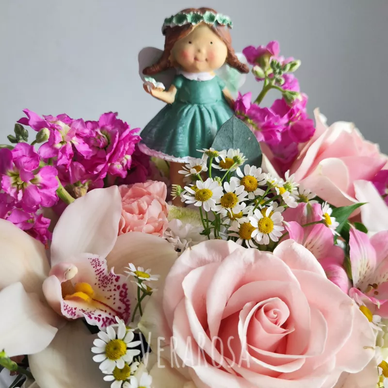 Существует на свете лес грёз, где вместо деревьев растут прекрасные цветы. В этом волшебном месте живёт добрая фея цветов. Она создала для вас этот чудесный букет и наполнила его частичкой магии. Подарите этот букет близкому человеку, и, возможно, ваши самые заветные желания исполнятся.