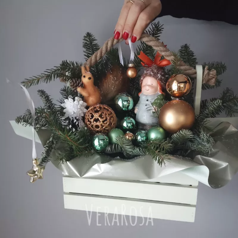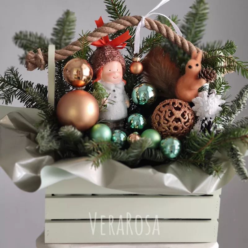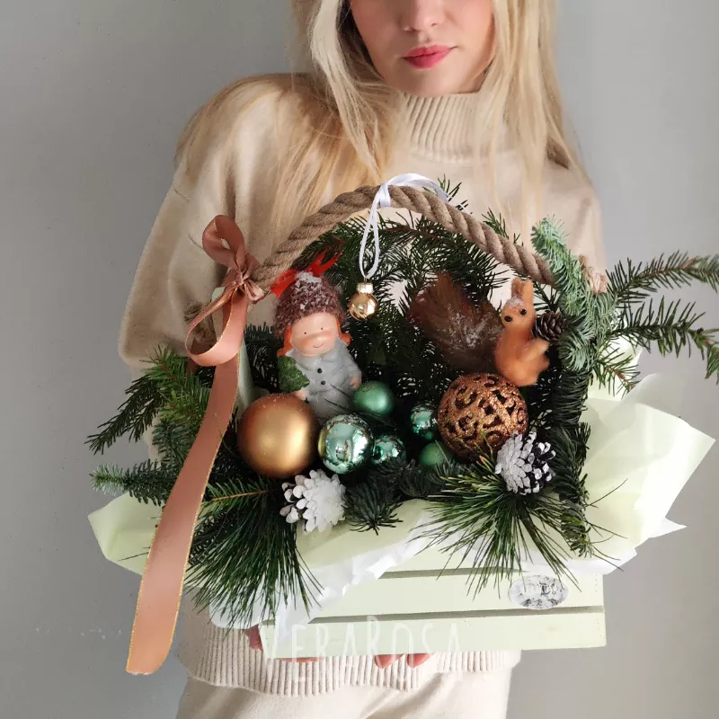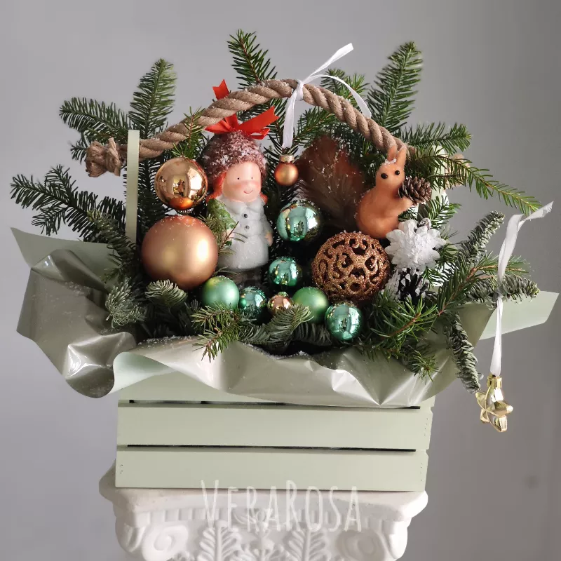 Композиция из нобилиса в ящике Машенька и белочка