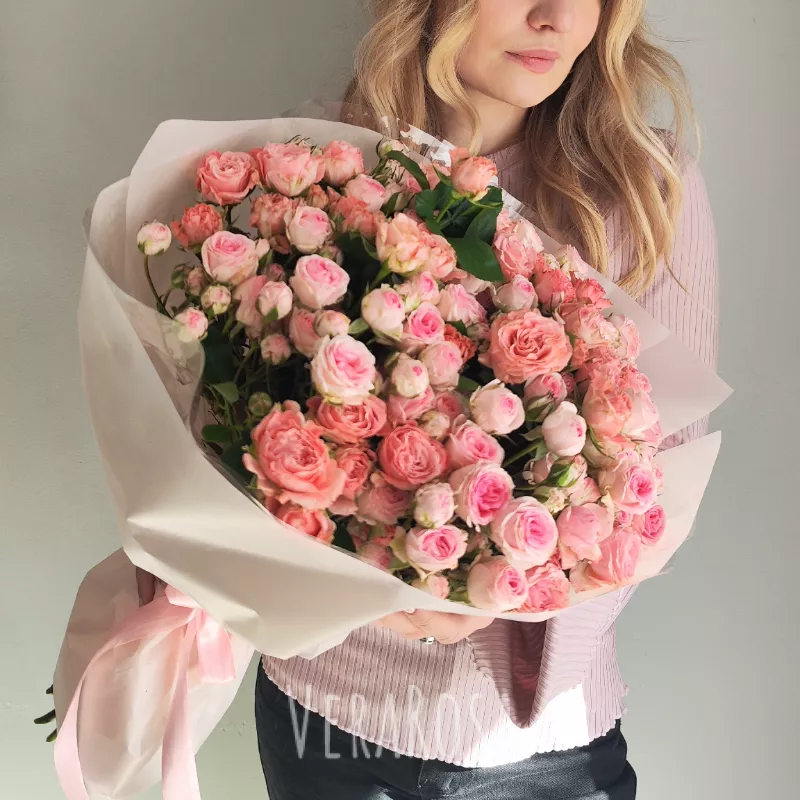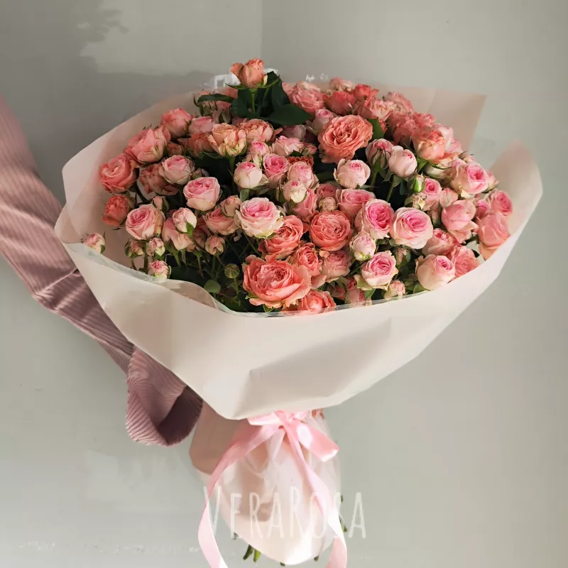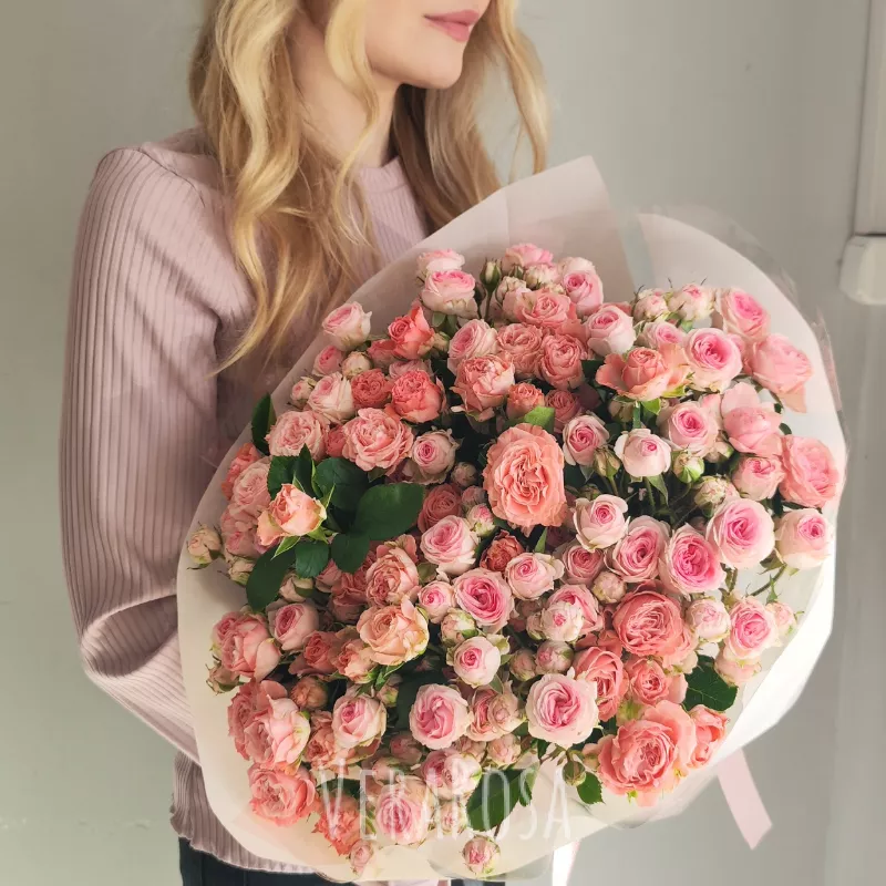 Этот букет, словно нежное облако, сплетенное из розовых роз, излучает романтику и утонченность. Его пышные головки, укутанные в бархатистые лепестки, обещают подарить незабываемые чувства.