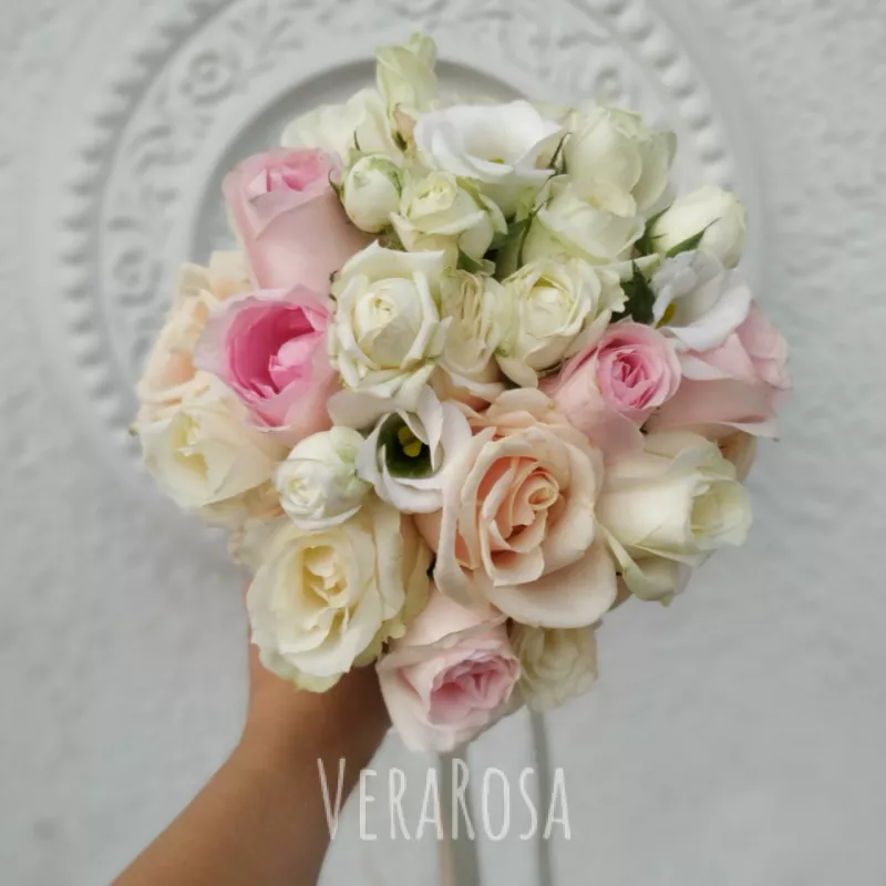 Утонченный букет невесты в нежных оттенках пастели. Оформлен французским кружевом и атласными лентами. Обратите внимание, чтобы букет максимально был похож на представленный, оформить заказ лучше всего за 7-14 дней до мероприятия.